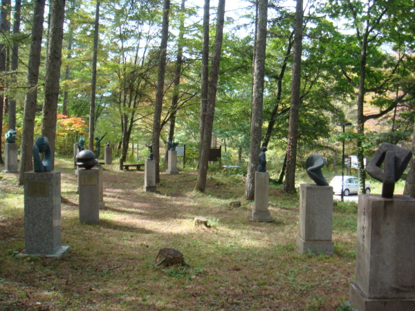 「学童彫刻の森」は、八ヶ岳美術館駐車場の山側にあり、いつでもご自由にご覧いただけます。(原村教育委員会管轄)