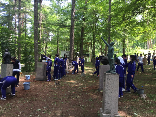 毎年夏には原中学校3年生による「学童彫刻の森」清掃活動、3月にはブロンズ設置の除幕式が行われています。