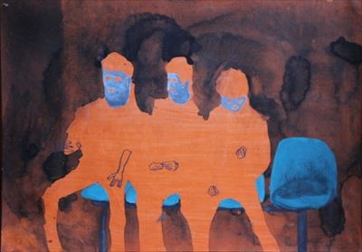 西新太(にし・あらた)は、1983年横浜市生まれ、原村育ちの画家で、2008年愛知県立芸術大学美術学部油画科を卒業したのち、原村に戻り絵画制作を続けています。「絵を描くドラマー」を目指していた西は、大学在学中から、原村を拠点とするバンドOGRE YOU ASSHOLE(オウガ・ユー・アスホール)の初代ドラマーとして各地の音楽ライブに出演し、アルバムのジャケットも手掛けるなど、絵画と音楽活動の分野で活躍してきました。